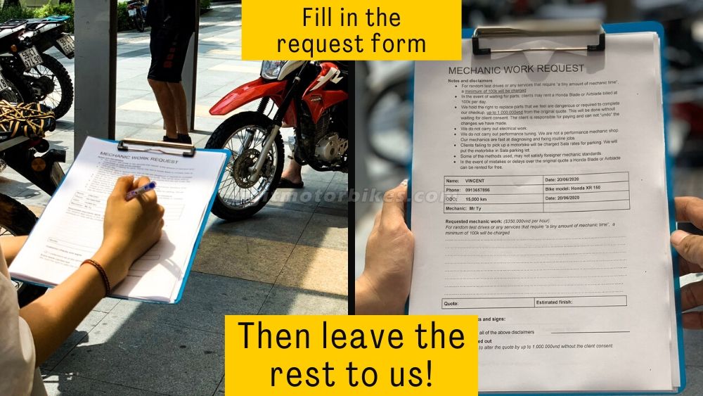 Tigitmotorbikes.com Saigon motorbike service and checkup. In Saigon, we have experienced mechanics that are responsible for the Tigit Motorbike rental fleet, during Covid-19 times we now have enough spare time to service outside motorbikes!