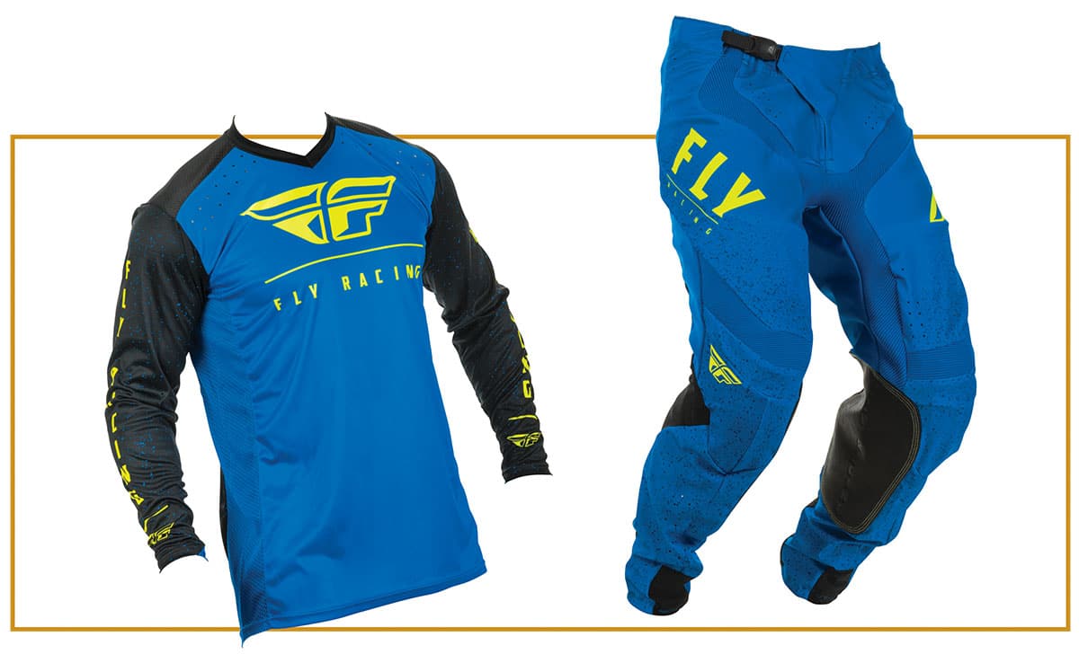 - Set $100 Your own jeans and any t-shirt or jacket over the top of the ForceField Pro Tubes is fine. The motocross gear has the added bonus of maximum breath-ability. The Fly T-shirts weigh nothing, and just by touching them it is obvious that these are designed for keeping you cool. The trousers add a little padding around the knee and hip areas, whilst having a soft material below the knee which allows wind to sweep up inside the trousers. For staying cool, there is nothing better than motocross gear.