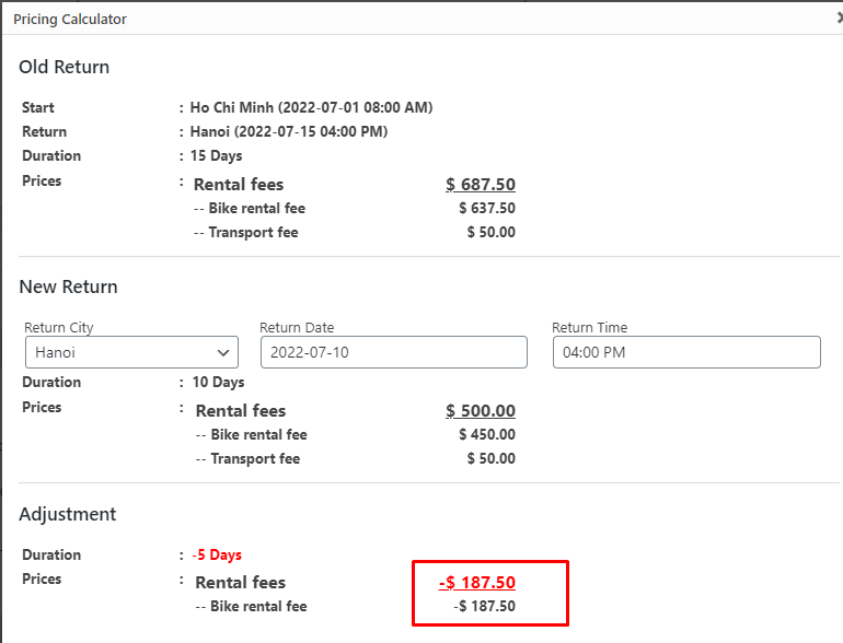 The fees will be waived if a member of staff feels your change of plans is causing no additional logistics or transport costs to the company. This usually applies to scenarios related to a change from a small city to a big city. For example, changing from returning in Dalat to Ho Chi Minh is unlikely to cause the company transport costs. A staff will waive the “wrong city return fee“.